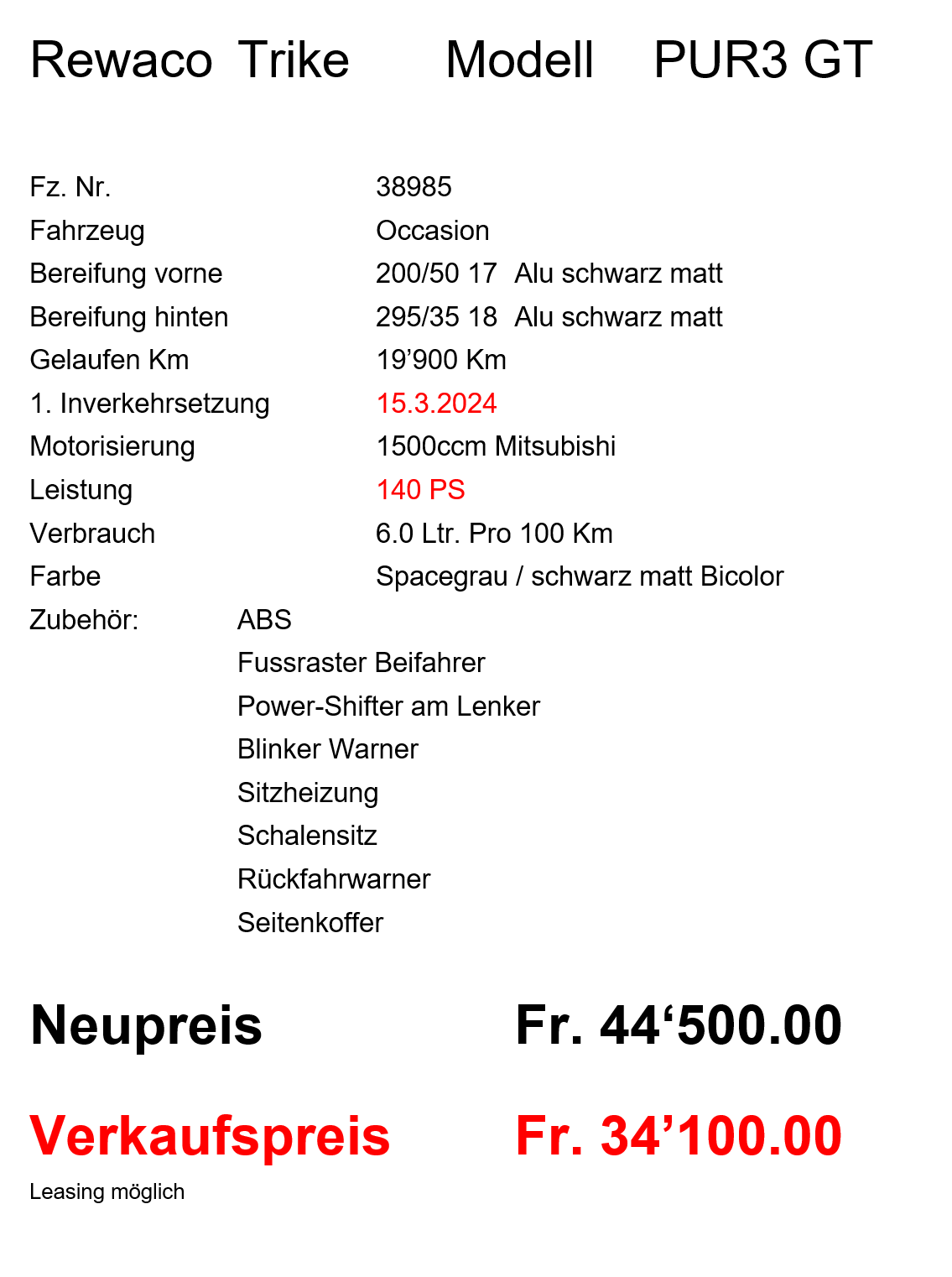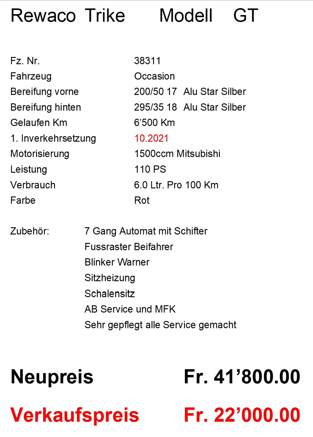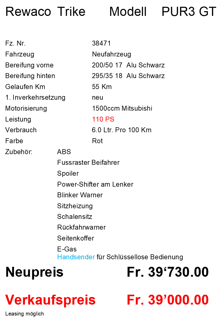 Rewaco Trike RF1 Touring ab SFR 39850.-